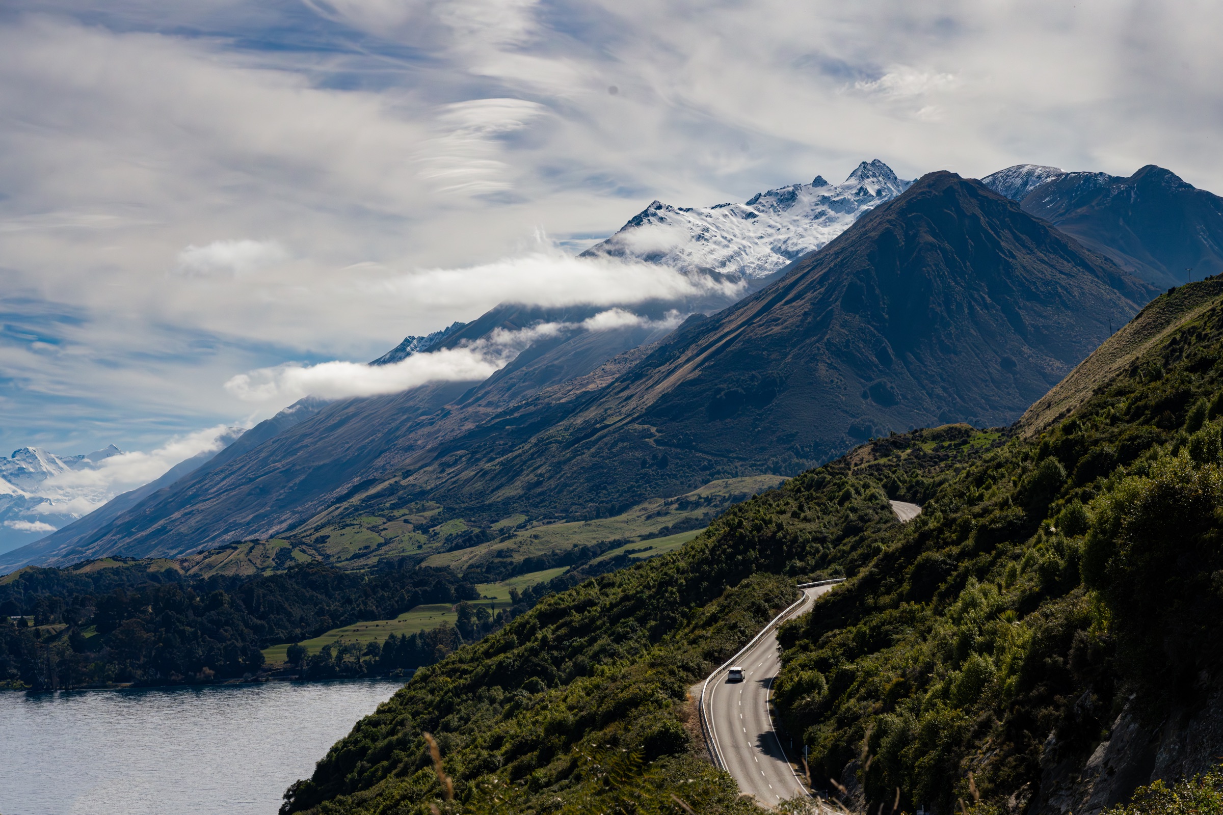 公路贴着湖岸转弯,雪山和云层把呼吸重新拉长。